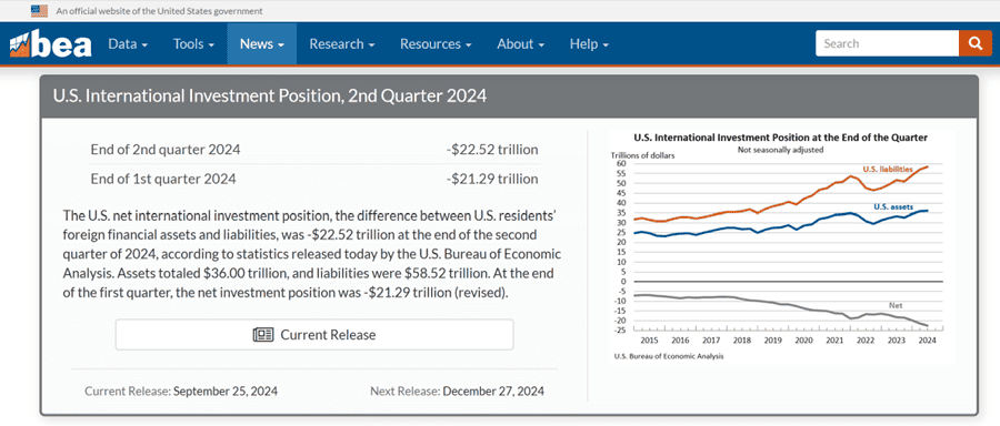 Next, let’s look at another chart, which shows the trends in U.S. international investments. These investments are decreasing.