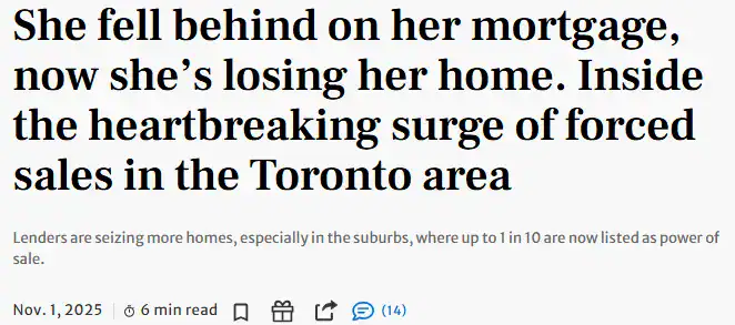 Read MoreToronto Homeowner Locked Out After Missing One Mortgage Payment as GTA Faces Wave of Power-of-Sale Listings