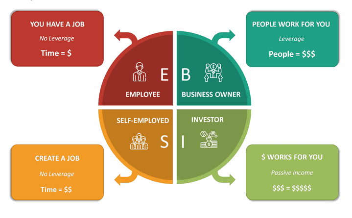Before diving deeper, let’s explore the ESBI model, which categorizes different income-generating strategies: